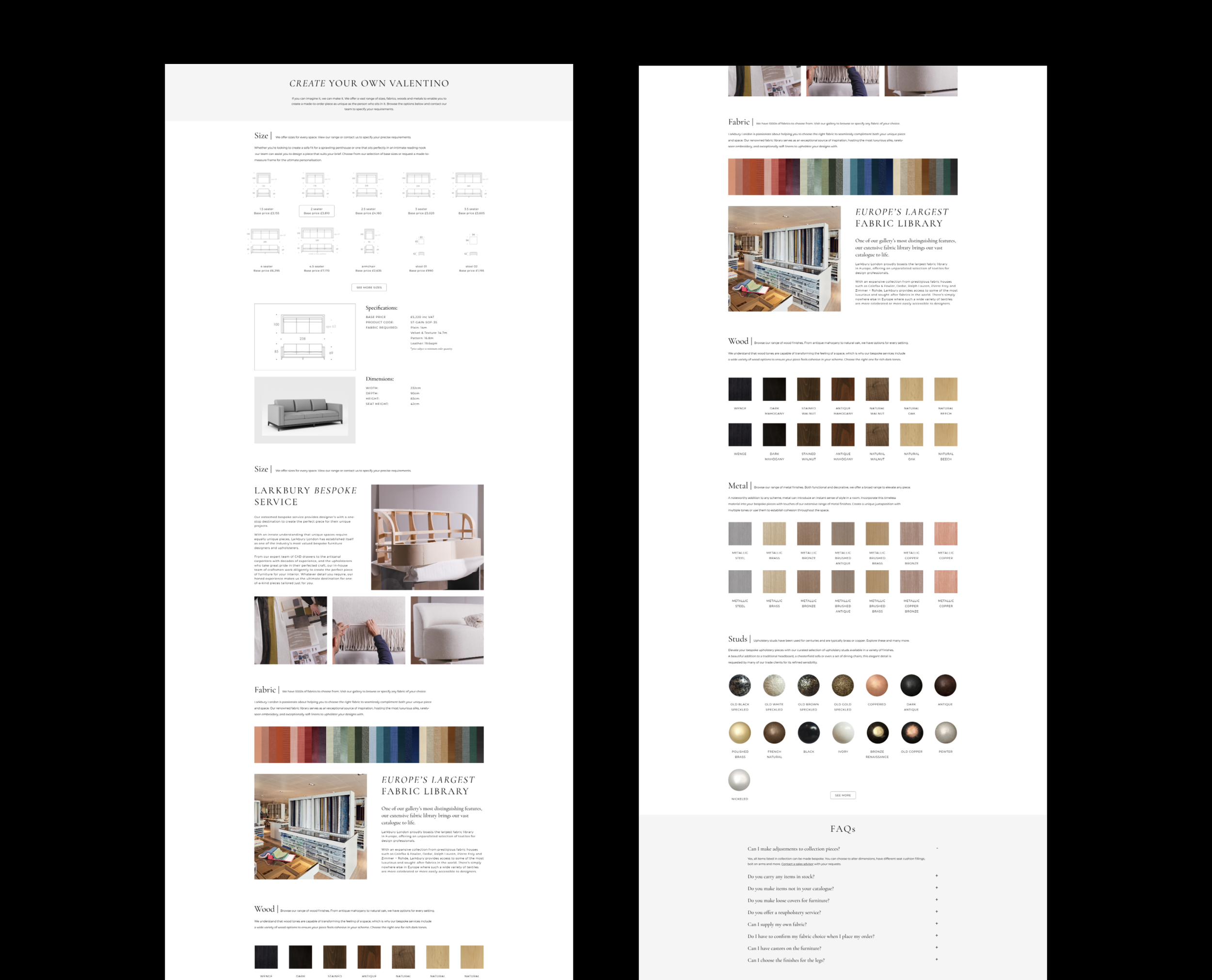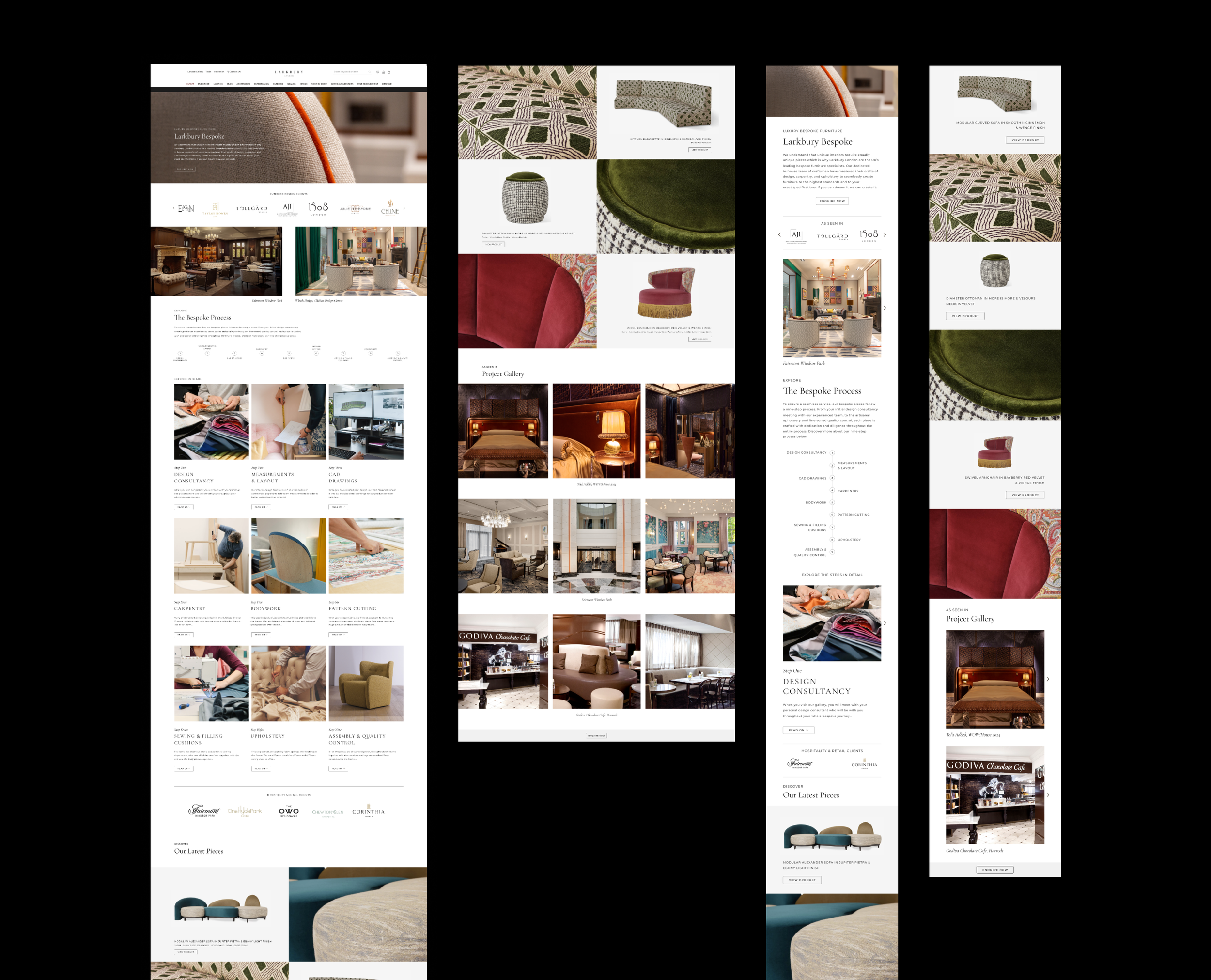 I redesigned the Bespoke page to clearly communicate Larkbury’s fully tailored service, breaking down each stage from design consultancy and selection through to upholstery and final quality control. The layout was structured to feel premium, informative, and easy to navigate for clients.