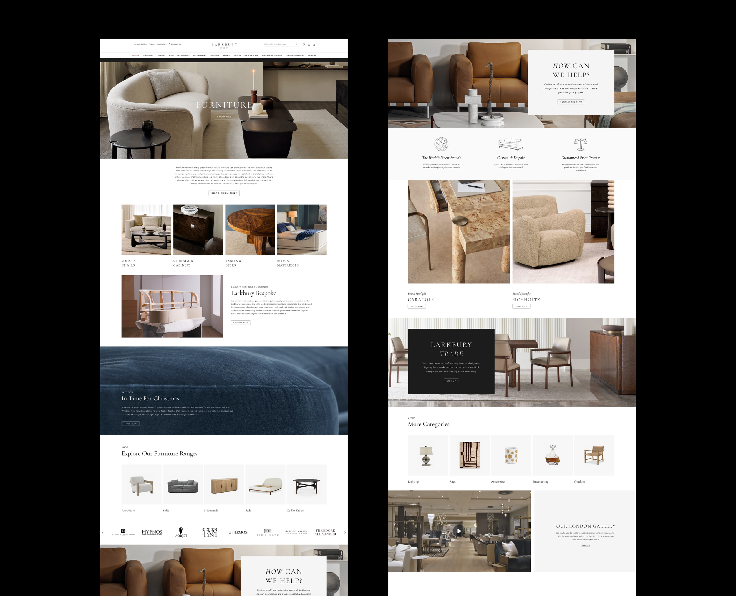 The Furniture landing page was refreshed to better reflect the scale of Larkbury’s product offering, with an improved structure that highlights the wide range of designer brands stocked. The redesign focused on creating a more engaging and intuitive browsing experience.