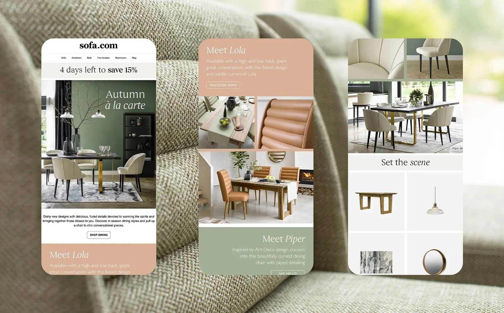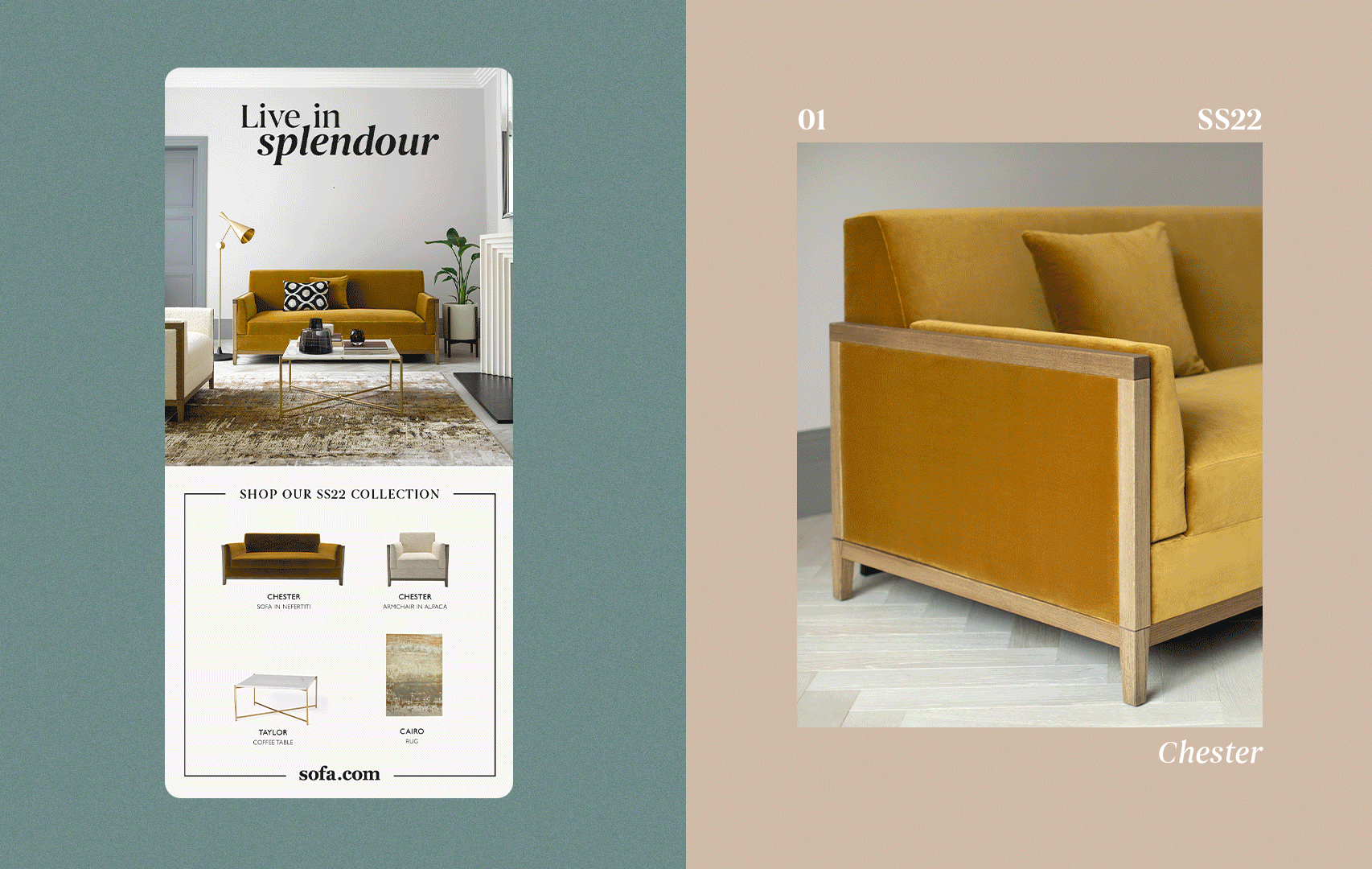 I designed a variety of digital and print assets to support the launch of multiple seasonal campaigns at sofa.com. Shown here is a selection of work including website landing pages, Pinterest pins, Instagram stories, email designs, and printed rug and lighting guides for showrooms. Each piece was created to inspire and engage both new and existing customers, using product photography and dynamic design to bring the brand’s seasonal stories to life.